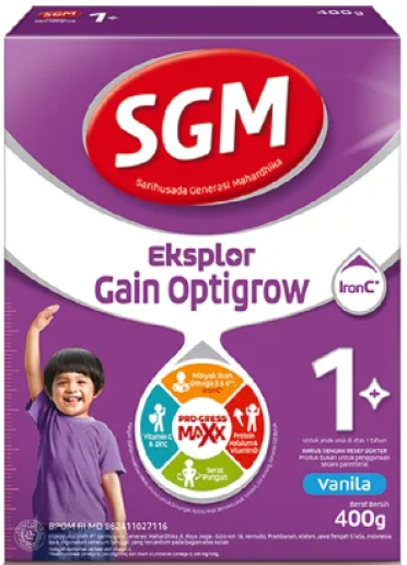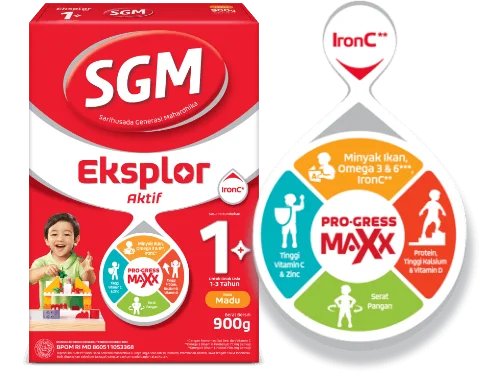 SGM Eksplor Aktif 1+ Pro-gress Maxx dengan kombinasi unik Zat Besi & Vitamin C, IronC membantu penyerapan maksimal nutrisi penting yang dibutuhkan si Kecil, seperti Minyak Ikan, Omega 3 & 6, Kalsium serta nutrisi penting lainnya. Pastikan si Kecil mendapatkan stimulasi yang tepat & nutrisi lengkap untuk mendukung 5 Potensi Prestasi Anak Generasi Maju: Berpikir Cepat, Gigih, Percaya Diri, Tumbuh Tinggi, dan Aktif Bersosialisasi.